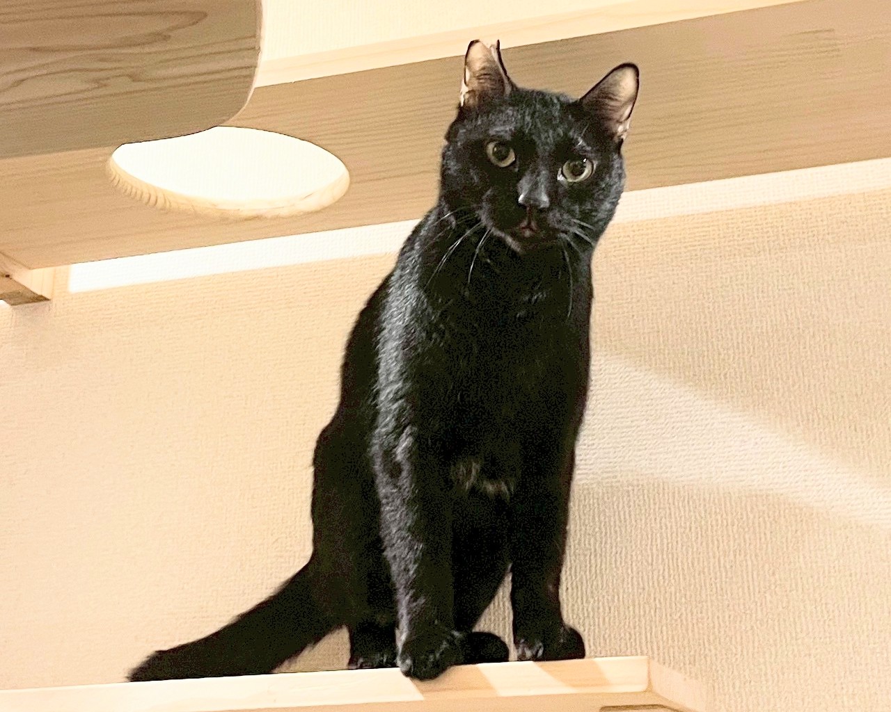 とってもイケメン。新しい環境でも食欲旺盛。元気にキャットウォークをぐるぐる歩き回っています。