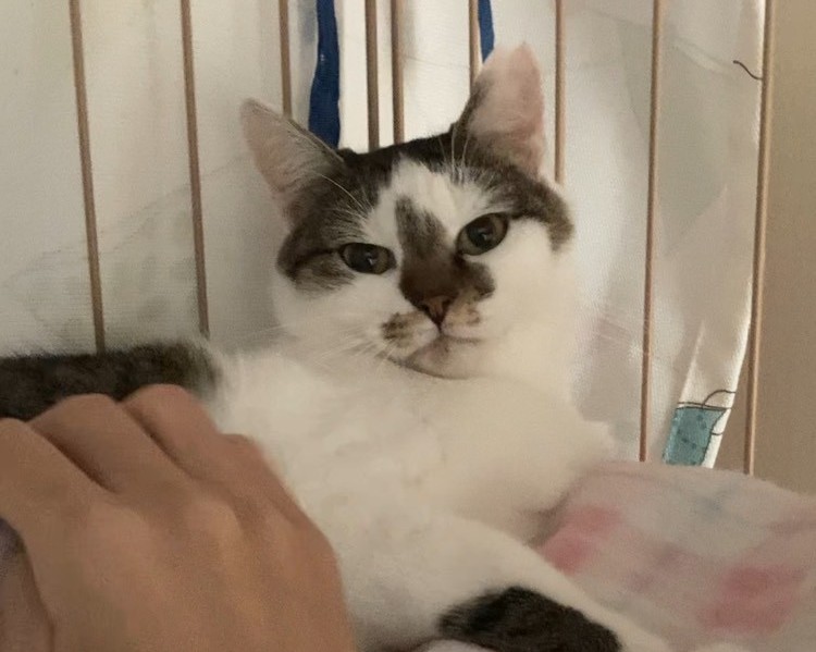 保護の経緯:西宮市のある地域に現れ、外で触ることができました。すぐにお家にも慣れ、家猫になれるだろうと思い保護しました。