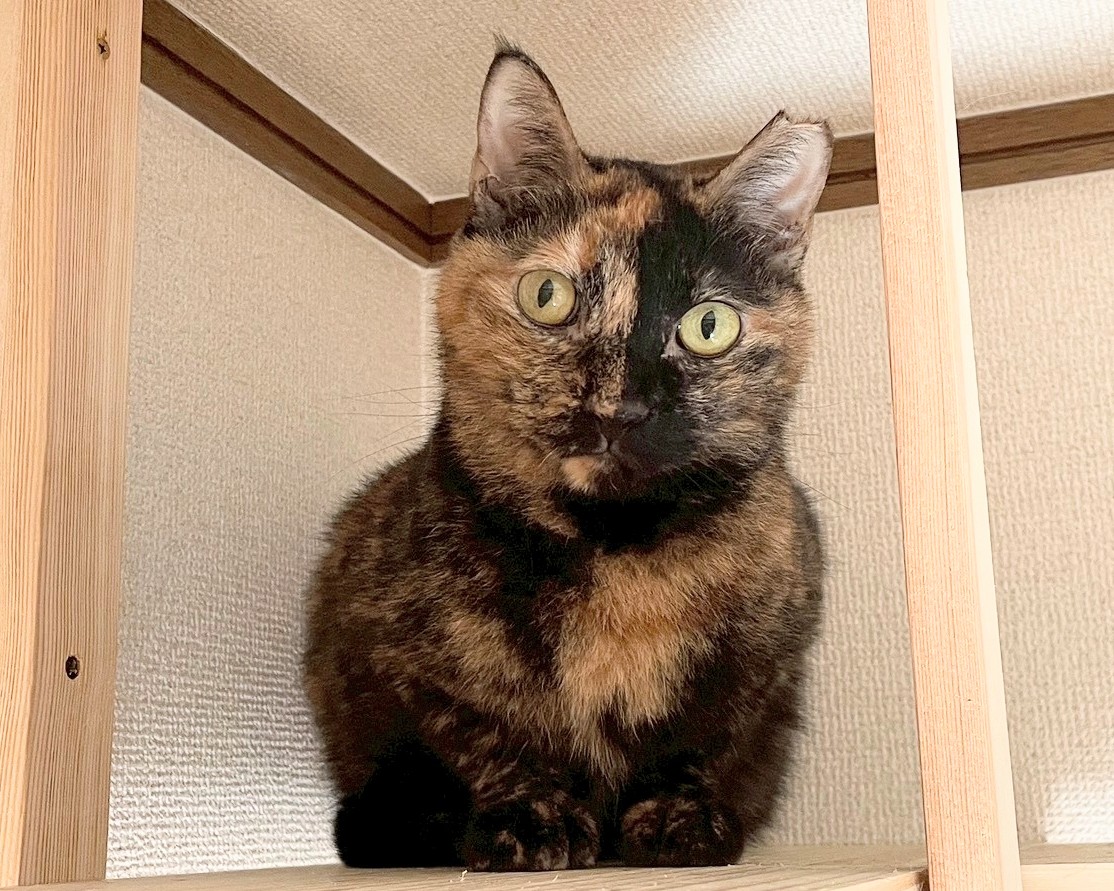 性格:短いしっぽがチャームポイントで動きがとってもユニークで可愛いです。怖がりさんで今はまだお触りできない中、おやつは手から食べてくれるようになりました!時には人間のベッドにも上がってきて、足元で一緒に寝てくれます!怖がりなのに好奇心旺盛♪