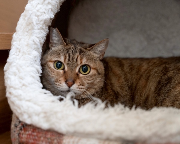性格:短いしっぽがチャームポイントで動きがとってもユニークで可愛いです。怖がりさんで今はまだお触りできない中、おやつは手から食べてくれるようになりました!時には人間のベッドにも上がってきて、足元で一緒に寝てくれます!怖がりなのに好奇心旺盛♪